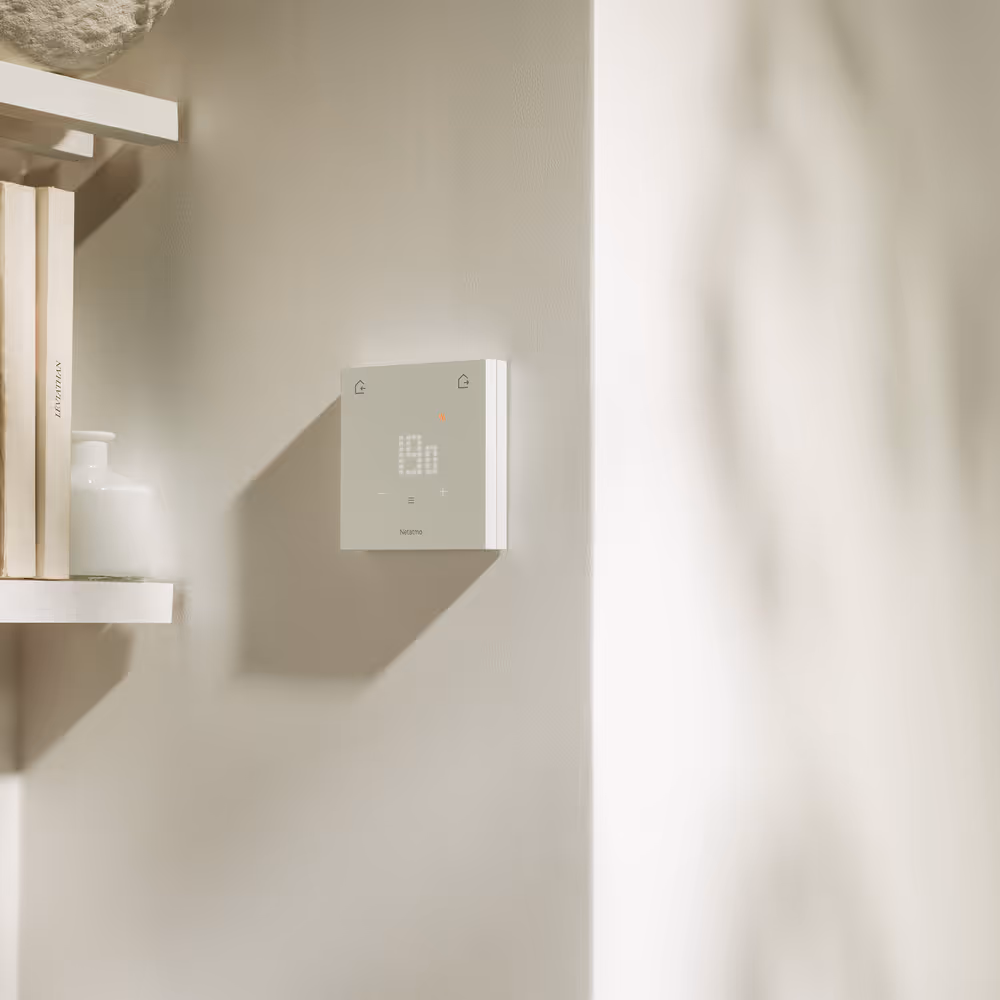 White and sleek, the Thermostat ORIGINAL naturally blends into your interior. Its touchscreen displays the essentials, then shuts off to reduce consumption. Made in Europe with 65% recycled plastics¹, it combines simplicity and eco-design.
