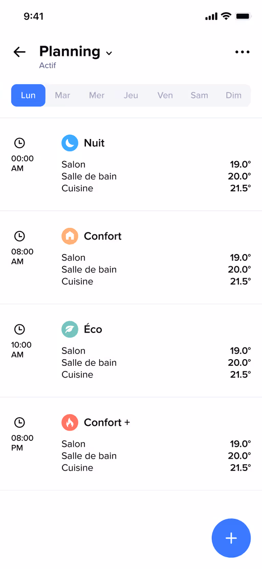 The Thermostat ORIGINAL adjusts heating to your routine: warmth in the morning, savings during the day, comfort in the evening. Create your schedules easily from the app. Up to €250 saved per year², without compromising comfort.