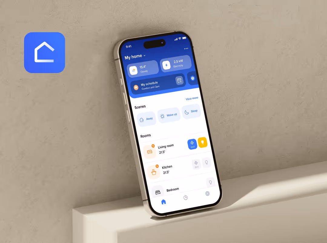 From Home + Control, your client can control their lighting, roller shutters, household appliances, and energy-consuming devices, wherever they are.