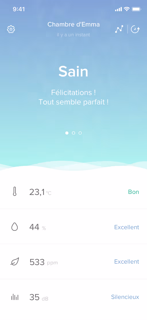 Quality sleep requires clean air: pay special attention to bedrooms for more restorative rest. Place a sensor in every room of your home to optimize your living comfort.