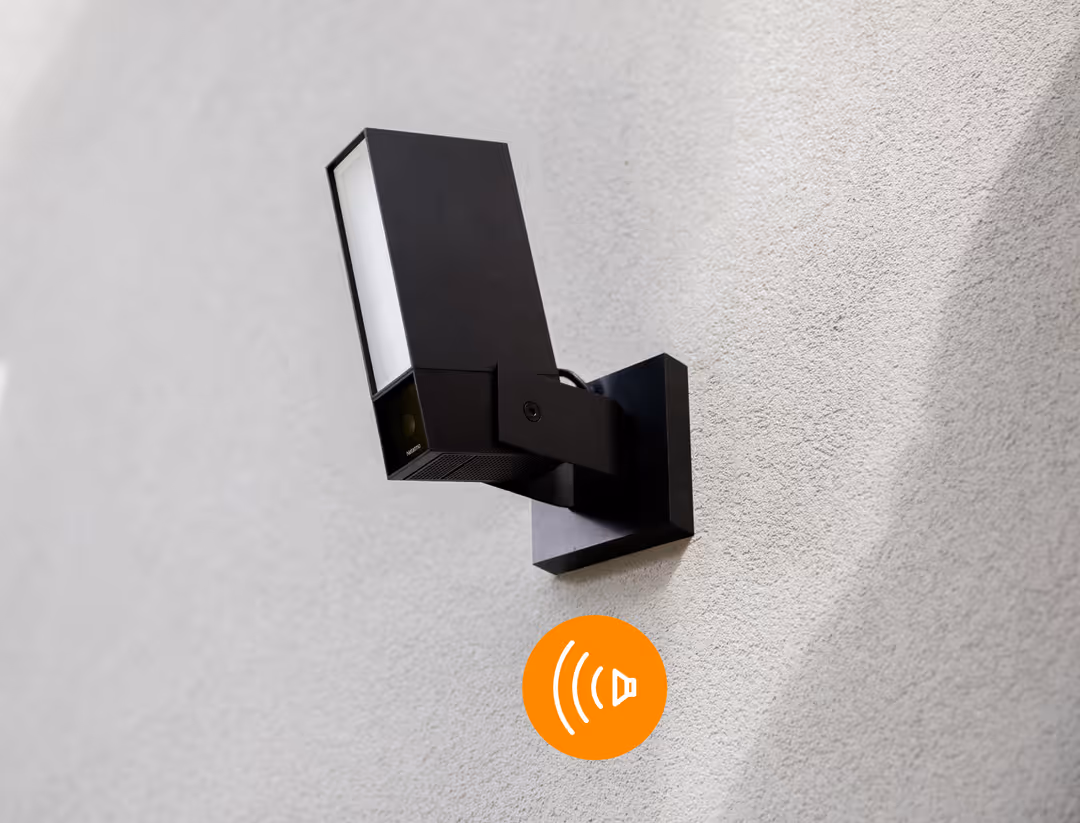 Your Smart Outdoor Camera with Siren keeps watch over your home under all circumstances. If it detects a presence, its integrated floodlight illuminates to deter the intruder. You can manually trigger the deterrent system or program it to activate automatically when detecting a person, a vehicle, or an animal.
